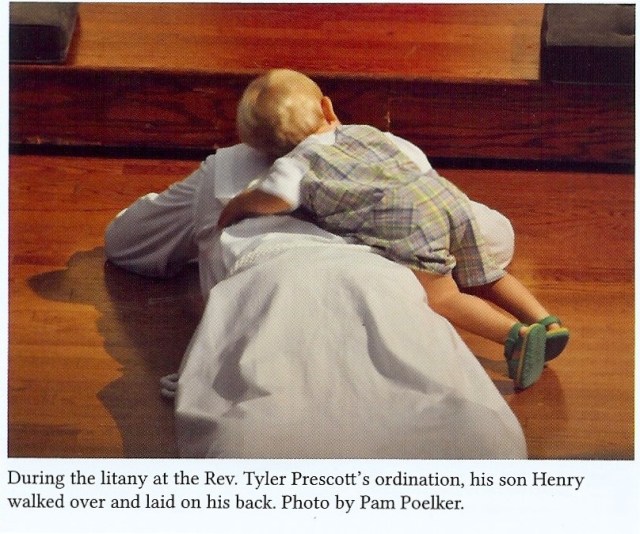 1. In case you are not familiar with the ceremony. During the ordination service, there is a portion of the service called the Litany of the Saints. This is when those being ordained lie prostrate in supplicaiton and the congregation calls out to the saints to pray for the men to be ordained at this moment and throughout their ministry.